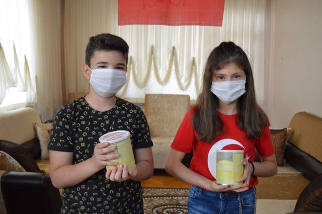 Kocatepe Mahallesi'nde yaşayan Cemre Saatçi (13) ile Enes Mert Öner, (11), tablet bilgisayar almak için kumbaralarında biriktirdikleri yaklaşık 700 lirayı kampanyaya bağışlamak istediklerini dedelerine söyledi.