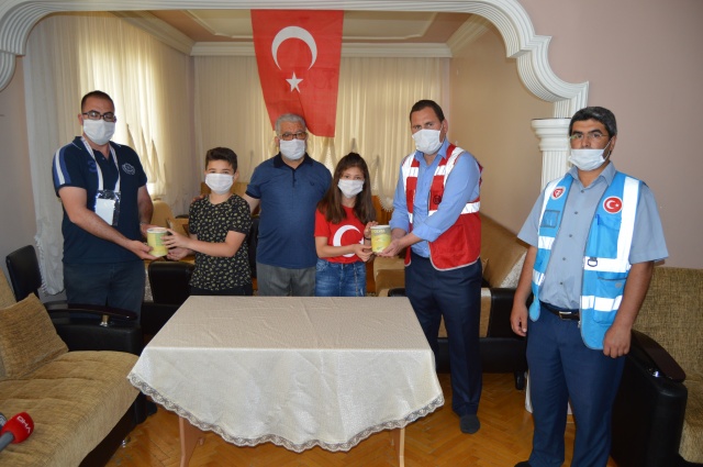112 Çağrı Merkezine gelen talep üzerine harekete geçen Vefa Sosyal Destek Grubu görevlileri, çocukları evinde ziyaret ederek, bağış yapılan parayı kampanya için açılan banka hesabına yatırmak üzere tutanakla teslim aldı.