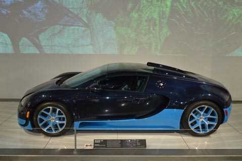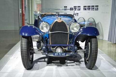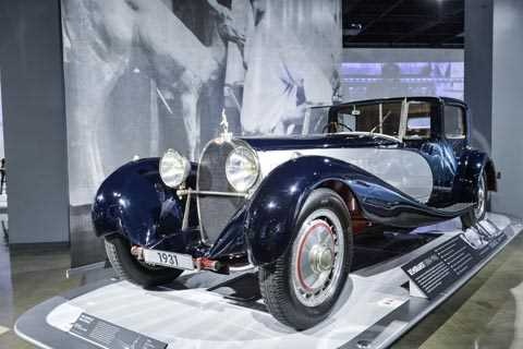 ABD'nin California Eyaleti Los Angeles kentindeki Petersen Otomotiv Müzesi'nde Bugatti otomobil sergisi kapılarını ziyaretçilere açtı. Fotoğrafta 1932 model Bugatti Type 55 Super Sports görülüyor.