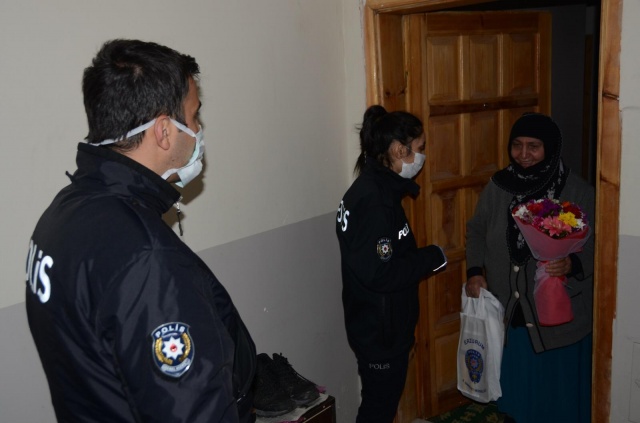 Sosyal Hizmetler ve Sağlık Şube Müdürlüğü ile Toplum Destekli Polislik Şube Müdürlüğü personeli, kentteki bazı şehit anneleri ile eşlerinin evlerine giderek Anneler Günü'nü kutladı.