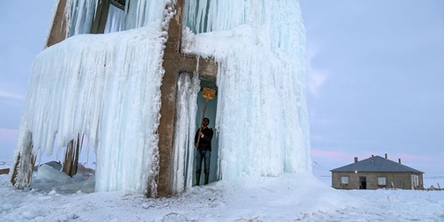 Van'da dondurucu soğuklar nedeniyle boruları patlayan su deposu, akan suların donmasıyla buz kulesine dönüştü. Özalp ilçesine bağlı Sarıköy Mahallesi'nde bulunan su deposunda da aşırı soğuklar nedeniyle boruları patladı. Yaklaşık 20 metre yüksekliğe sahip 4 katlı su deposunda patlayan borulardan akan suların aşırı soğuklar nedeniyle donması, ortaya buz kulesini andıran bir görüntü çıkardı.