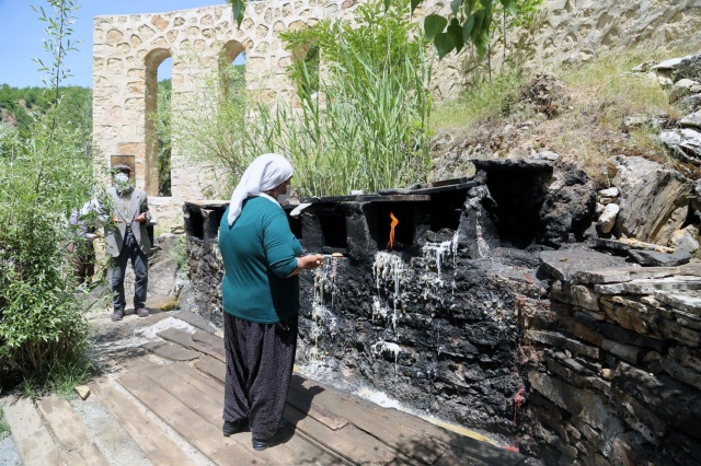 Güneşli bir havada vadinin tadını çıkaran yaşlı vatandaşlar, yine Vefa Sosyal Destek Grubu üyelerinin yardımıyla Anafatma Ziyaretgahı'nda mum yakıp dua ederek niyaz dağıttı.