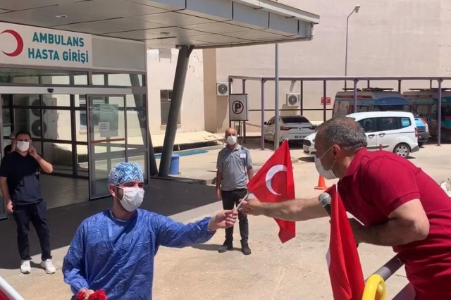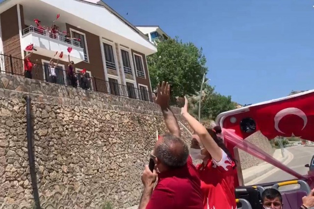 Sonel'in araçla çocuklara bayrak dağıtımı sırasında bazı vatandaşlar da evlerinin balkonları ile camından Türk bayrağı sallayarak Sonel'e destek verdi.