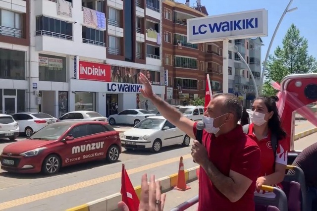 Kentin tanıtımı için şehre kazandırdığı üstü açık "City Sightseeing" tur aracına Gençlik Hizmetleri ve Spor İl Müdürü Abdülselam Er ve milli sporcularla binen Sonel, mahalle mahalle dolaşarak gençlere ve çocuklara Türk bayrağı dağıttı.