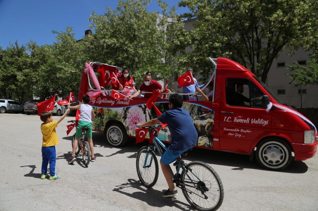 TUNCELİ (AA) - Tunceli Valisi Tuncay Sonel, 19 Mayıs Atatürk'ü Anma, Gençlik ve Spor Bayramı dolayısıyla kentin tanıtımı için alınan üstü açık "City Sightseeing" tur aracı ile mahalleleri gezerek vatandaşların bayramını kutladı ve çocuklara bayrak hediye etti.