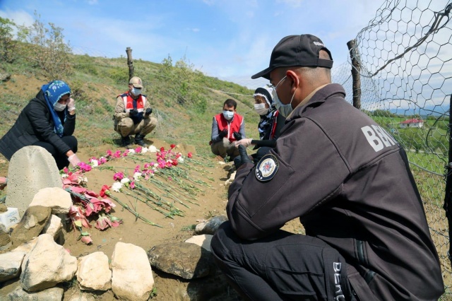 Vefa Sosyal Destek Grubu'ndaki bekçi ve jandarma personeli, 21 Nisan 2018'de şehit edilen Özdemir'in Mazgirt ilçesine bağlı Çat köyünde bulunan kabrini, şehidin eşi Nurgül, annesi Sakine ve babası Hıdır Özdemir ile ziyaret etti.