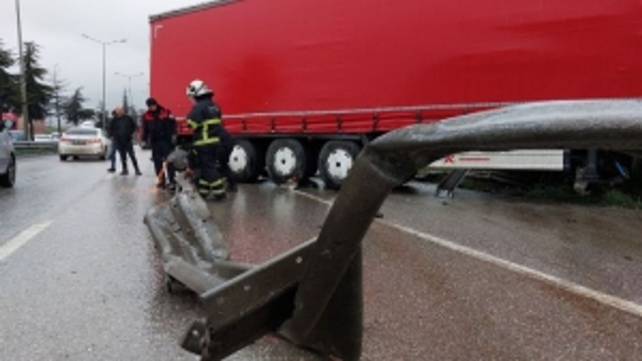 Samsun'da bariyeri parçalayan tırın motoru karşı şeride fırladı: 1 yaralı